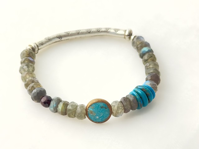 Labrodorite turqoiuse sterling stretch bracelet