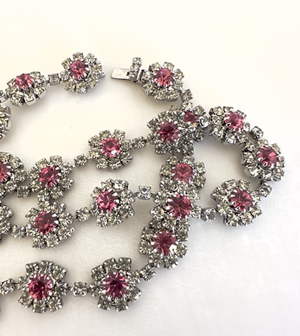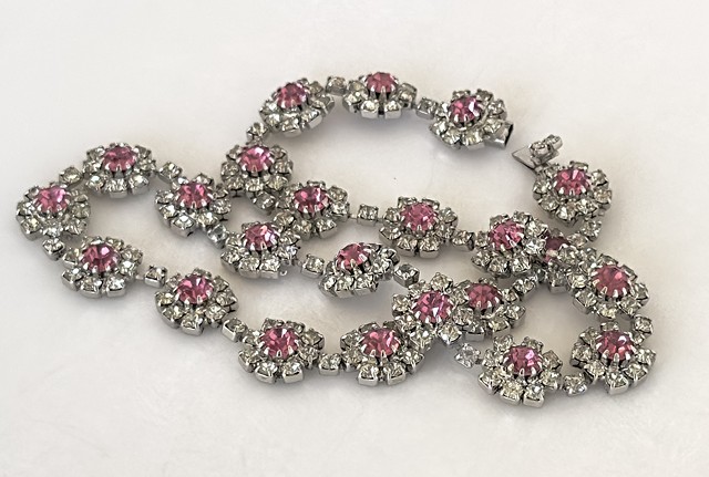 Gold-tone Bow Pearl and Rhinestone Necklace
